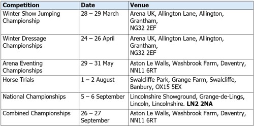 Equine passports, plus any hats to be checked, should be brought to the office before competing and back numbers (which must be worn) should be collected.
